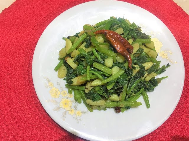 এরপর একটা কড়াইয়ে কুচি করে নেয়া লাউ শাক। কুচি করা আলু এবং সকল মশলা ও তেল দিয়ে ভাল্ভাবে মেখে নিতে হবে।