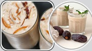 খেজুর- ১০-১৫টি কাজুবাদাম- কয়েকটি দুধ- আধা কাপ বরফ কুচি- ১ কাপ চিনি- স্বাদমতো পেস্তাবাদাম কুচি- কয়েকটি