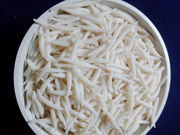 এরপর পিড়িতে সামান্য চালের গুঁড়া ছড়িয়ে এই লম্বা খামিরটি রেখে আরেক হাত দিয়ে ঘষে ঘষে ছোট ছোট করে সেমাই কেটে নিন। সবগুলো সেমাই তৈরি হয়ে গেলে তা রান্না করার পালা।